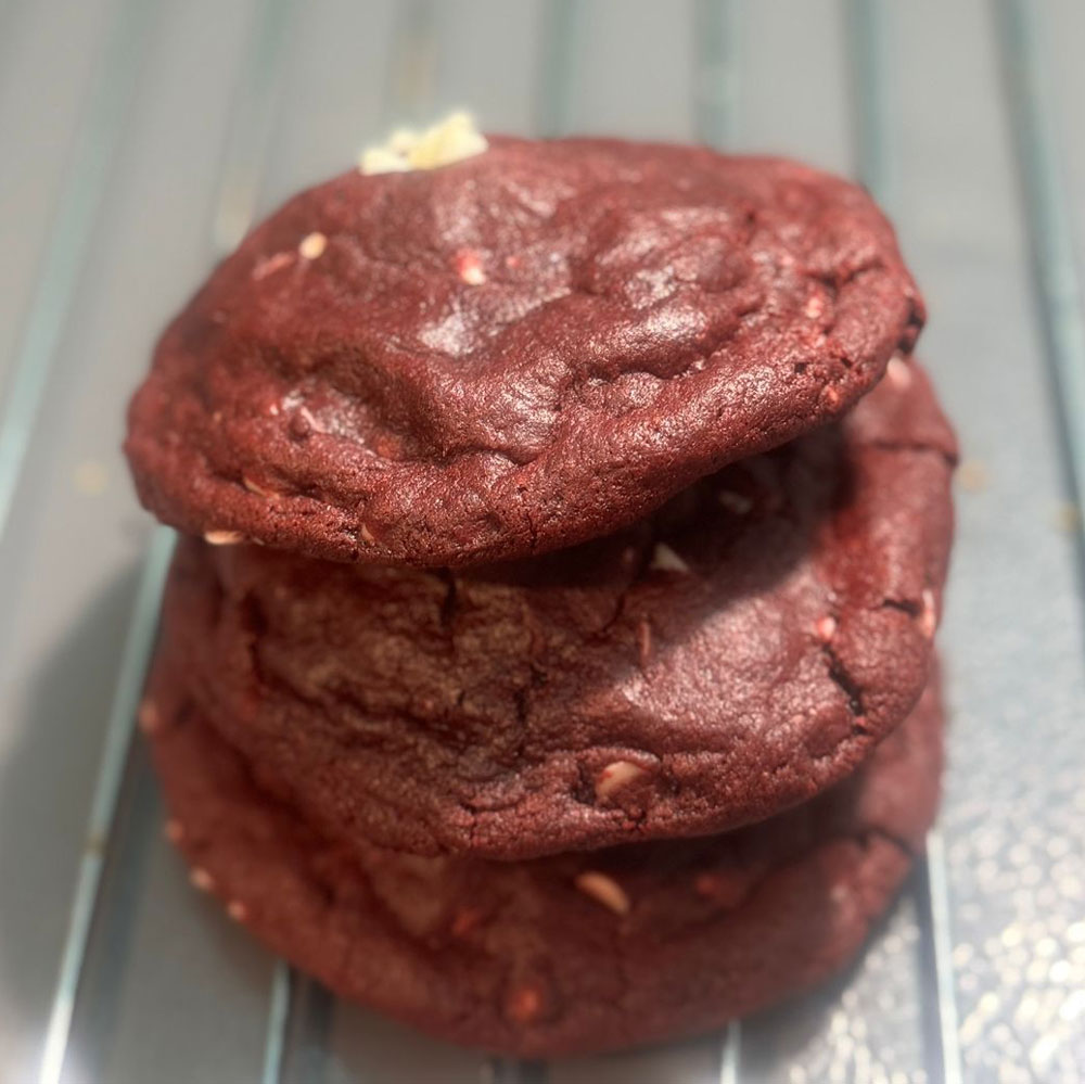 A vibrant red velvet base with a hint of cocoa, loaded with smooth white chocolate chunks. Soft, luxurious, and irresistibly creamy.